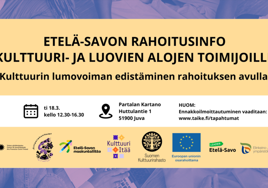 Etelä-Savon rahoitusinfo kulttuuri- ja luovien alojen toimijoille: Kulttuurin lumovoiman edistäminen rahoituksen avulla