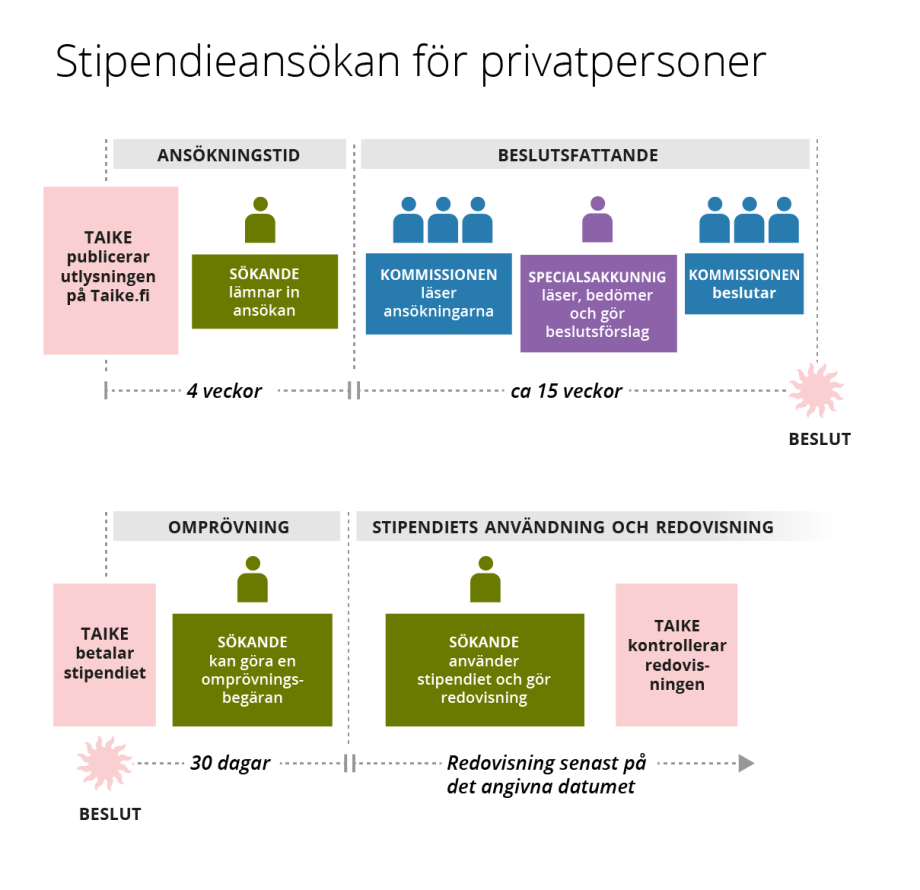 Det går att begära omprövning av beslut om beviljande av stipendium eller bidrag. Anvisningar för begäran om omprövning skickas till sökande med beslutsbrevet i Taikes e-tjänst.